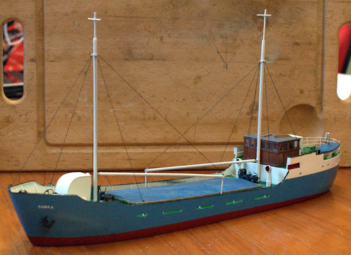 Skibet er snart klar til stabelafløbning, der mangler lidt maling - hist og pist - samt vant og stag. Når skibet har fået en omgang patinering og er blevet bemandet med kaptajn, matros og letmatros + skibshund er den klar til at blive placeret ved siden af Chr.IX i færgehavnen - Gammelhavn. I al euforien omkring Færgen Korsør var stakkels Samka ved at blive glemt - hun er trods alt så tæt på at blive færdig at der nu kun mangler skorstenen samt de 2 døre der på nedenstående billede anes på styrehusets tag!