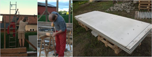 Jan og Flemming var en tur oppe ved Hjarbæk Fjord for at hente eternitplader til tilbygningen - et tidligere brevdueforeningsklubhus. Så der røg de 5 timer.