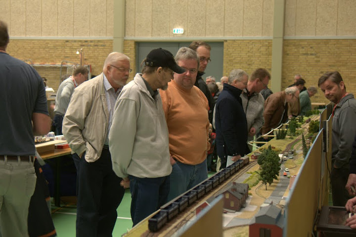 Da dørene blev åbnet kl.10.00 strømmede folk ind i hallen og der blev hurtigt mange der gerne ville snakke om Troldhede Station, hvorfor vi ikke kørte Märklin, hvad den lille kasse (vendesløjfemodul) skulle gøre godt for o.m.a.